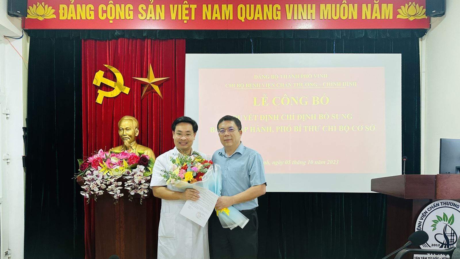 Theo đó, đồng chí Nguyễn Tất Ngọc - Phó Giám đốc Bệnh viện Chấn thương - Chỉnh hình Nghệ An được chỉ định bổ sung vào Ban chấp hành và giữ chức Ohos bí thư chi bộ Bệnh viện Chấn thương - Chỉnh hình Nghệ An, nhiệm kỳ 2020-2025.