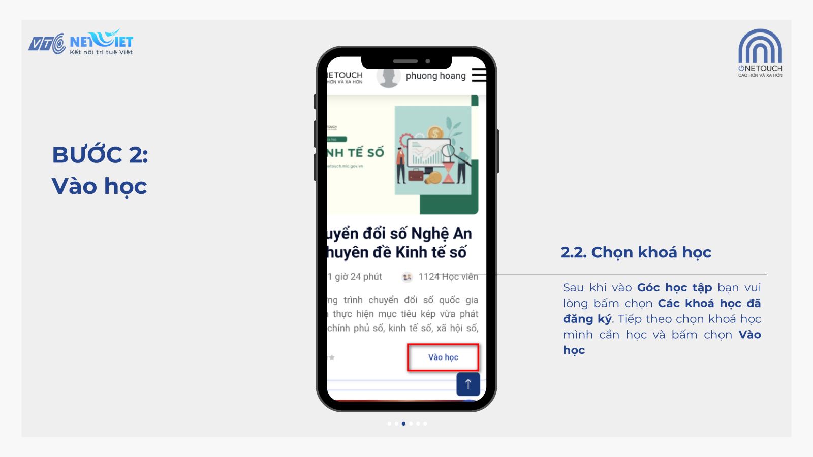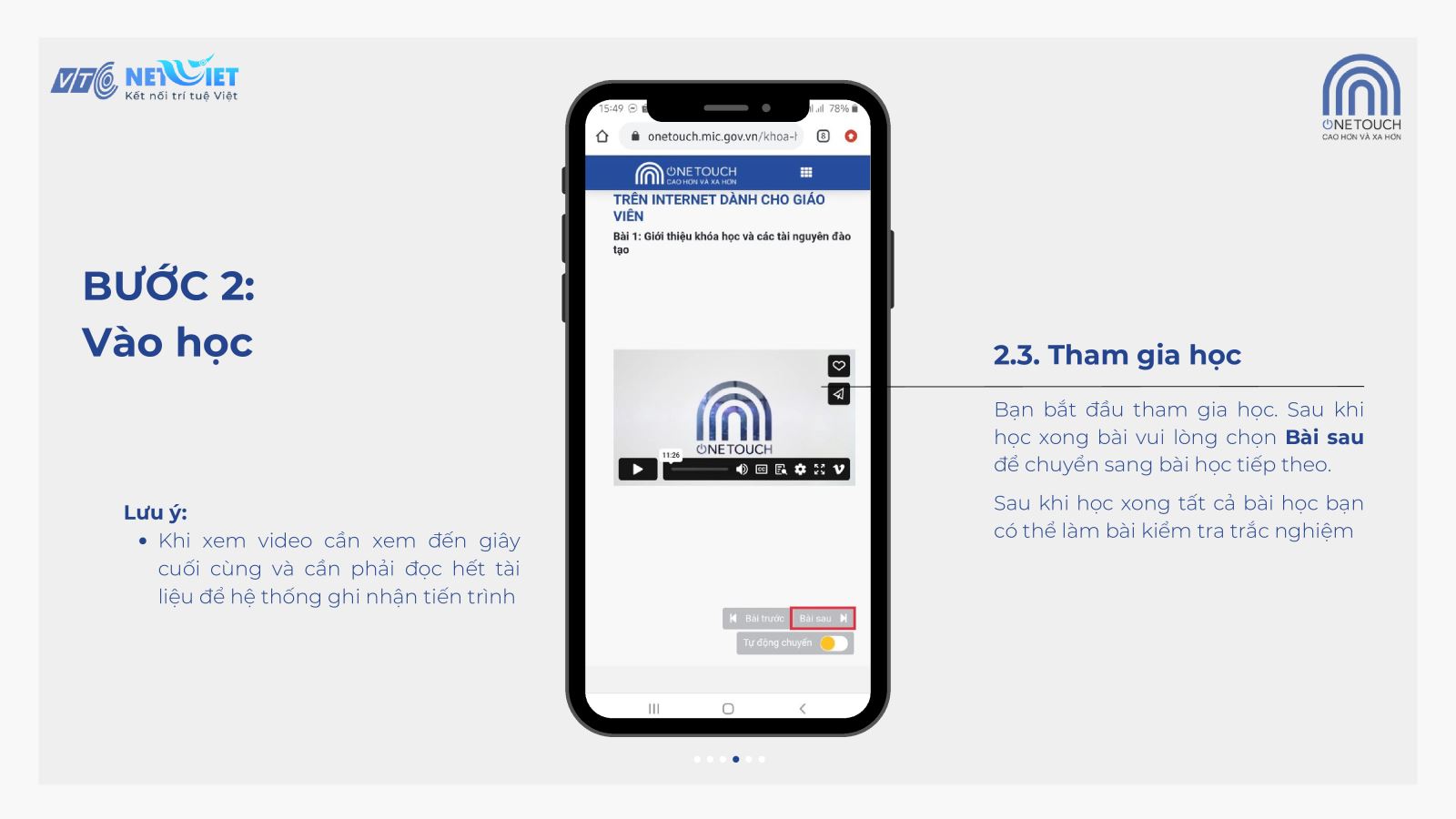 Tài liệu hướng dẫn cách đăng nhập và hoàn thành các bài học chuyển đổi số trên nền tảng trực tuyến Onetouch